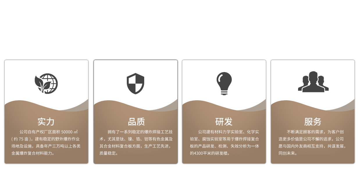 安徽弘雷金屬復合材料科技有限公司成立于2013年5月,坐落于宣紙之鄉—安徽省宣城市,專業從事各類金屬爆炸復合材料研發、生產、銷售和咨詢。注冊資本伍仟萬元,自有產權廠區6萬余平方米(約90畝),建有自有產權的野外爆炸作業場地及設施,具備年產四萬噸以上能力。...